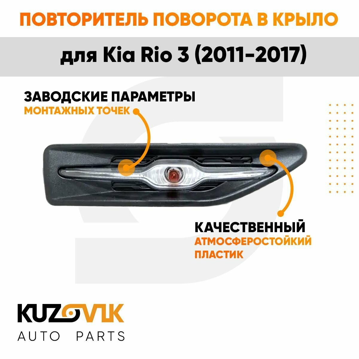 Купить Повторитель указателя поворота для Киа Рио Kia Rio 3 (2011-2017) правый поворотник с доставкой по всей России. Повторитель указателя поворота для Киа Рио Kia Rio 3 (2011-2017) правый поворотник: сравнение цен, характеристики, фото, актуальное наличие и цены.