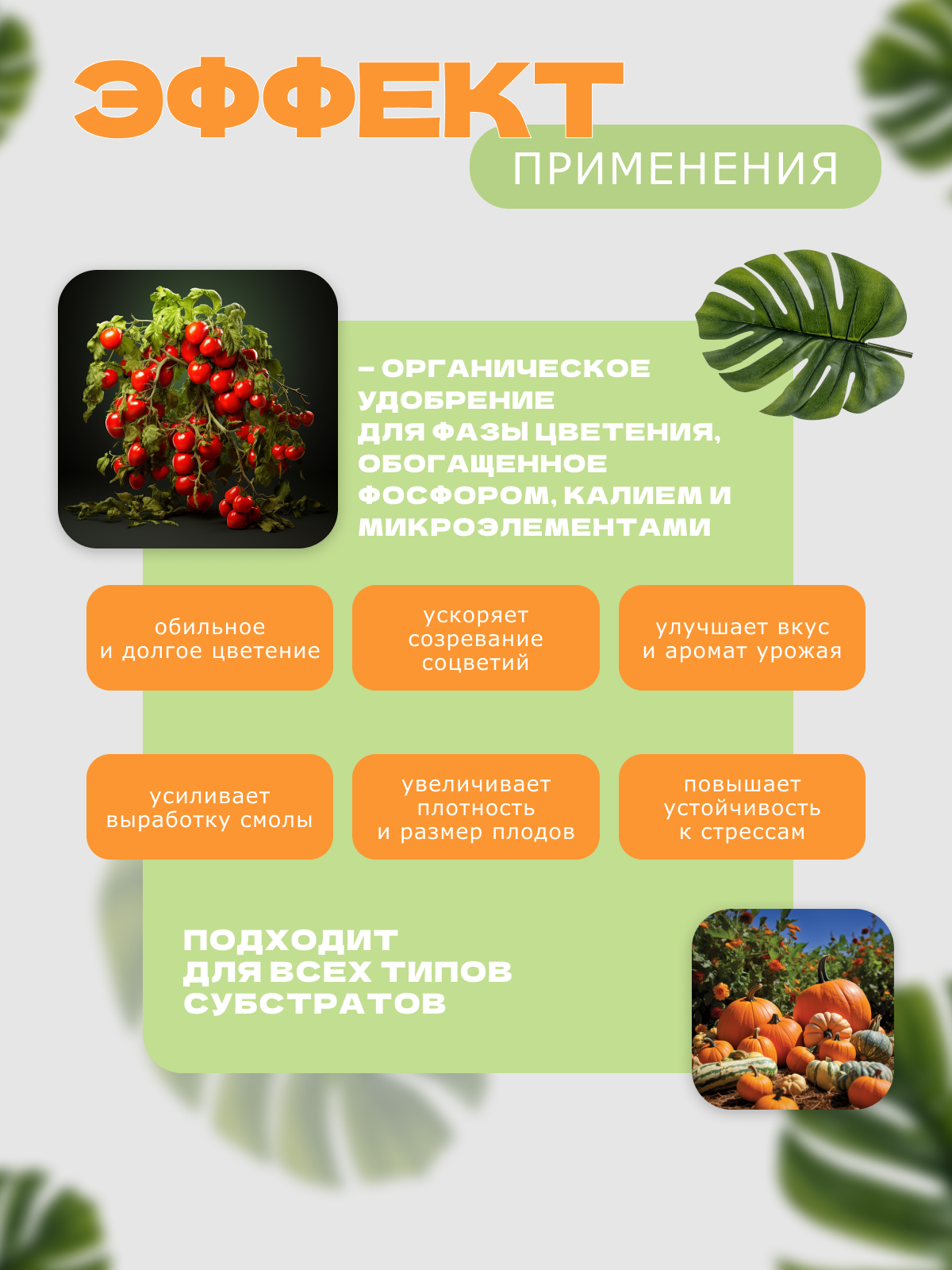 BioBloom — это комплексная смесь тщательно отобранных натуральных материалов, разработанная специально для цветения и производства фруктов.