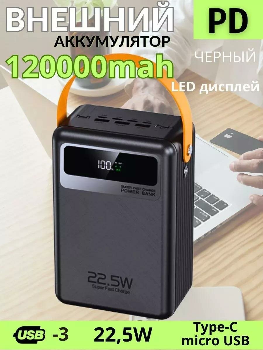 Внешний аккумулятор PowerBank 120000mAh высокой емкости Поддерживает быструю зарядку 22.5W: сравнение цен, характеристики, фото, актуальное наличие и цены.