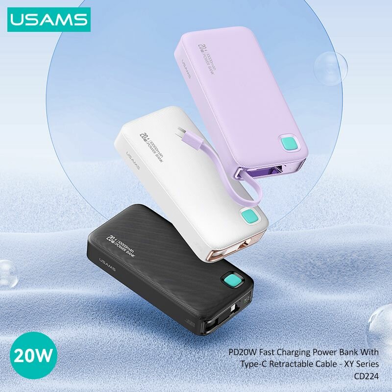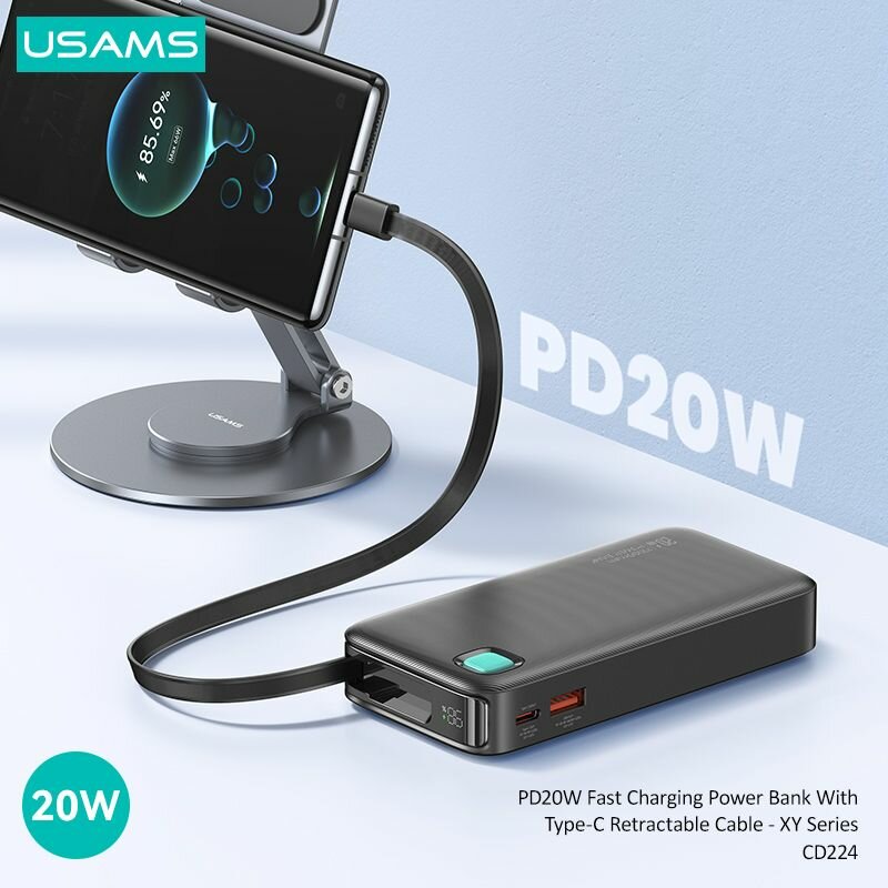 Power Bank внешний аккумулятор повербанк USAMS 10000 мАч 20W с кабелем