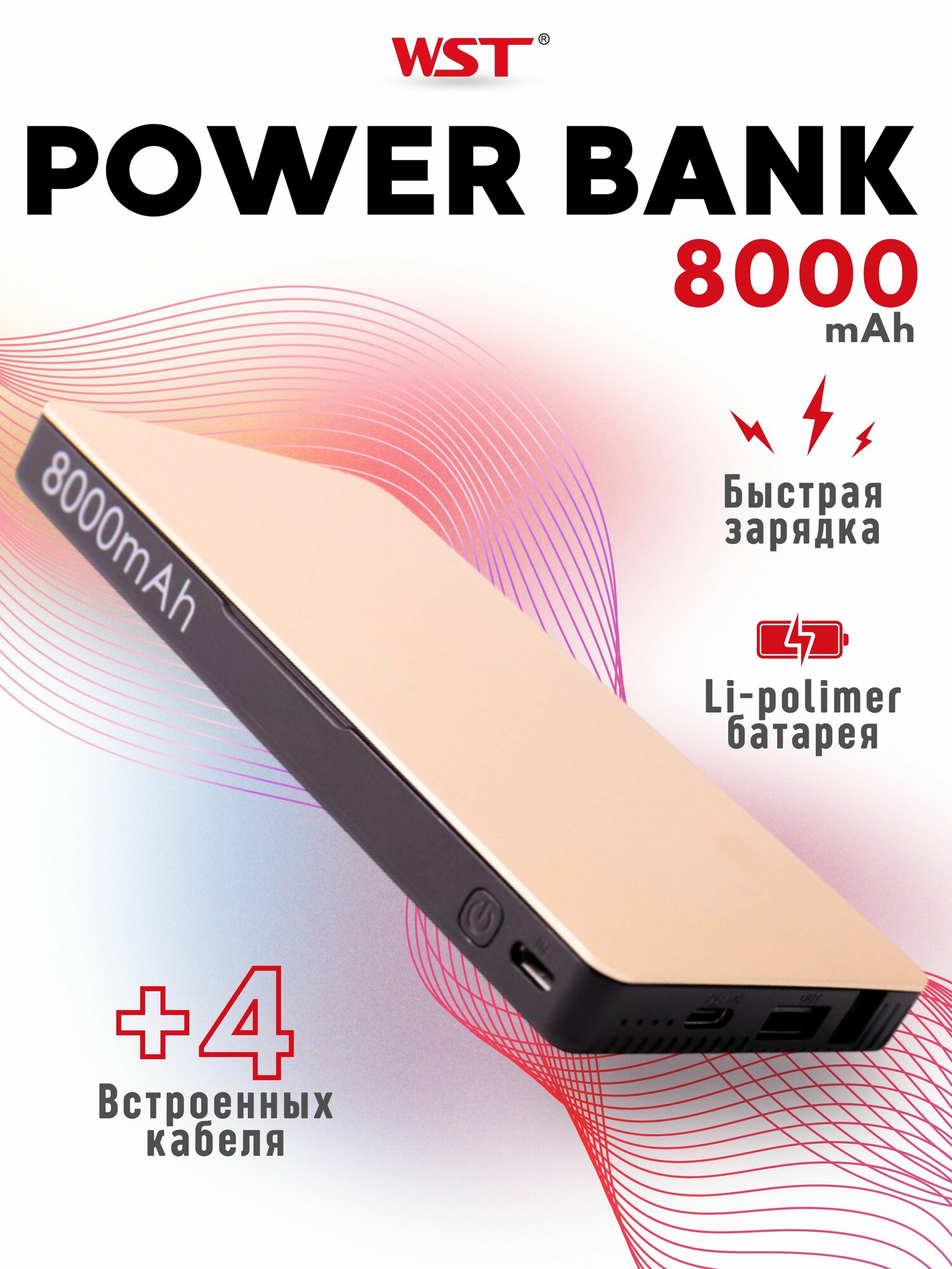 Внешний аккумулятор PowerBank WP932 8000 mAh для телефона с встроенными кабелями: сравнение цен, характеристики, фото, актуальное наличие и цены.
