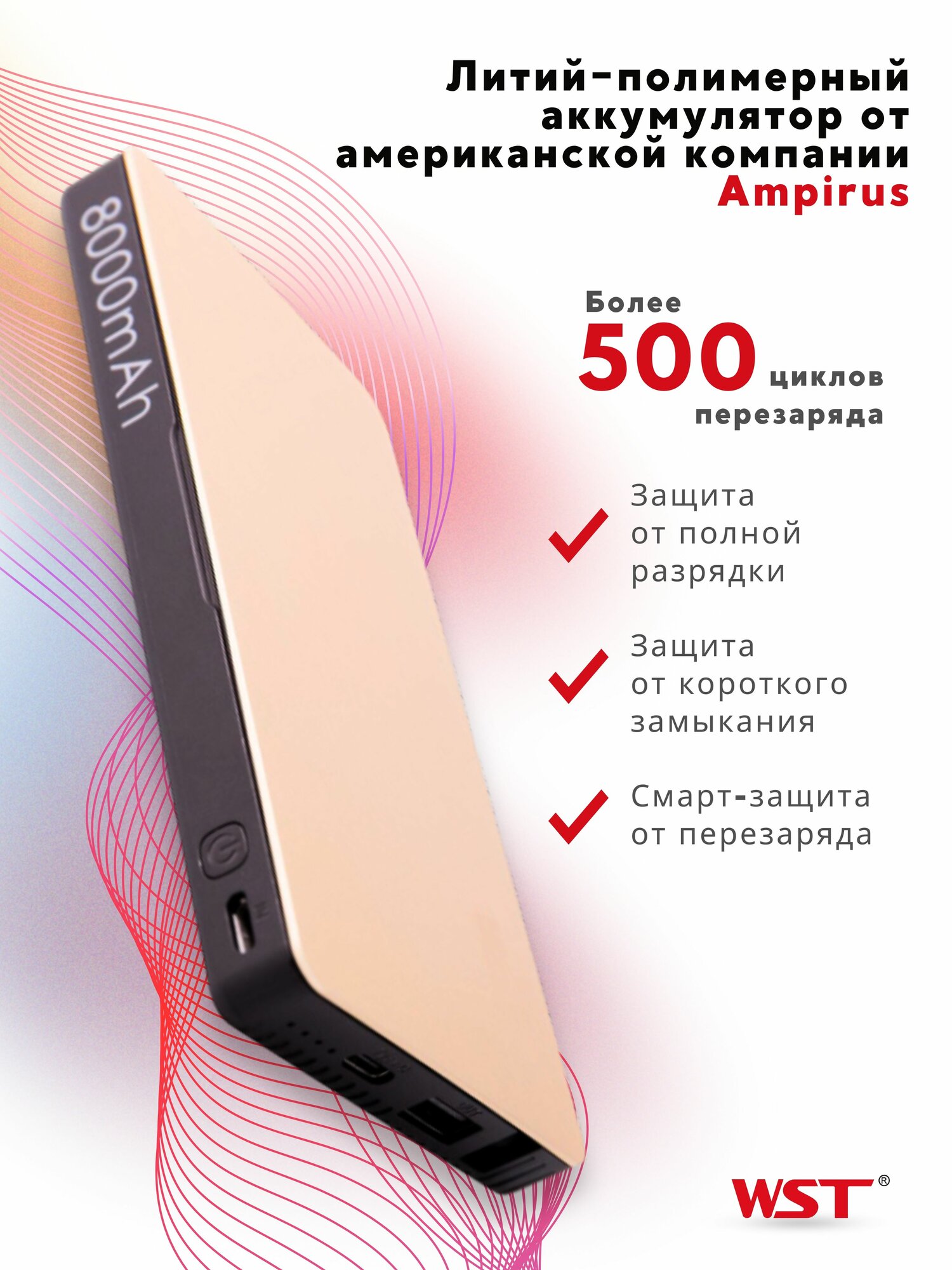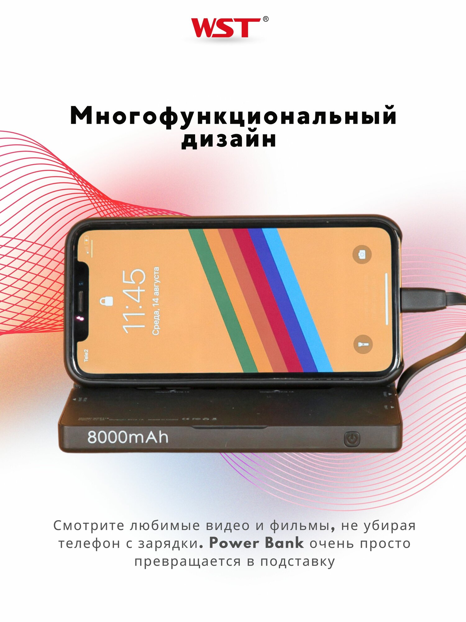 Купить Внешний аккумулятор PowerBank WP932 8000 mAh для телефона с встроенными кабелями с доставкой по всей России.