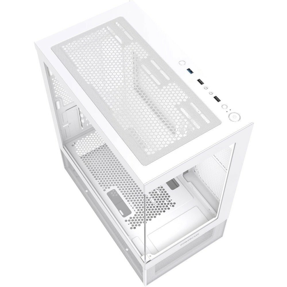 Корпус выполнен в белом цвете, что позволяет ему гармонично вписаться в любой интерьер. Благодаря своему дизайну, он не только выглядит стильно, но и обеспечивает эффективное охлаждение компонентов.