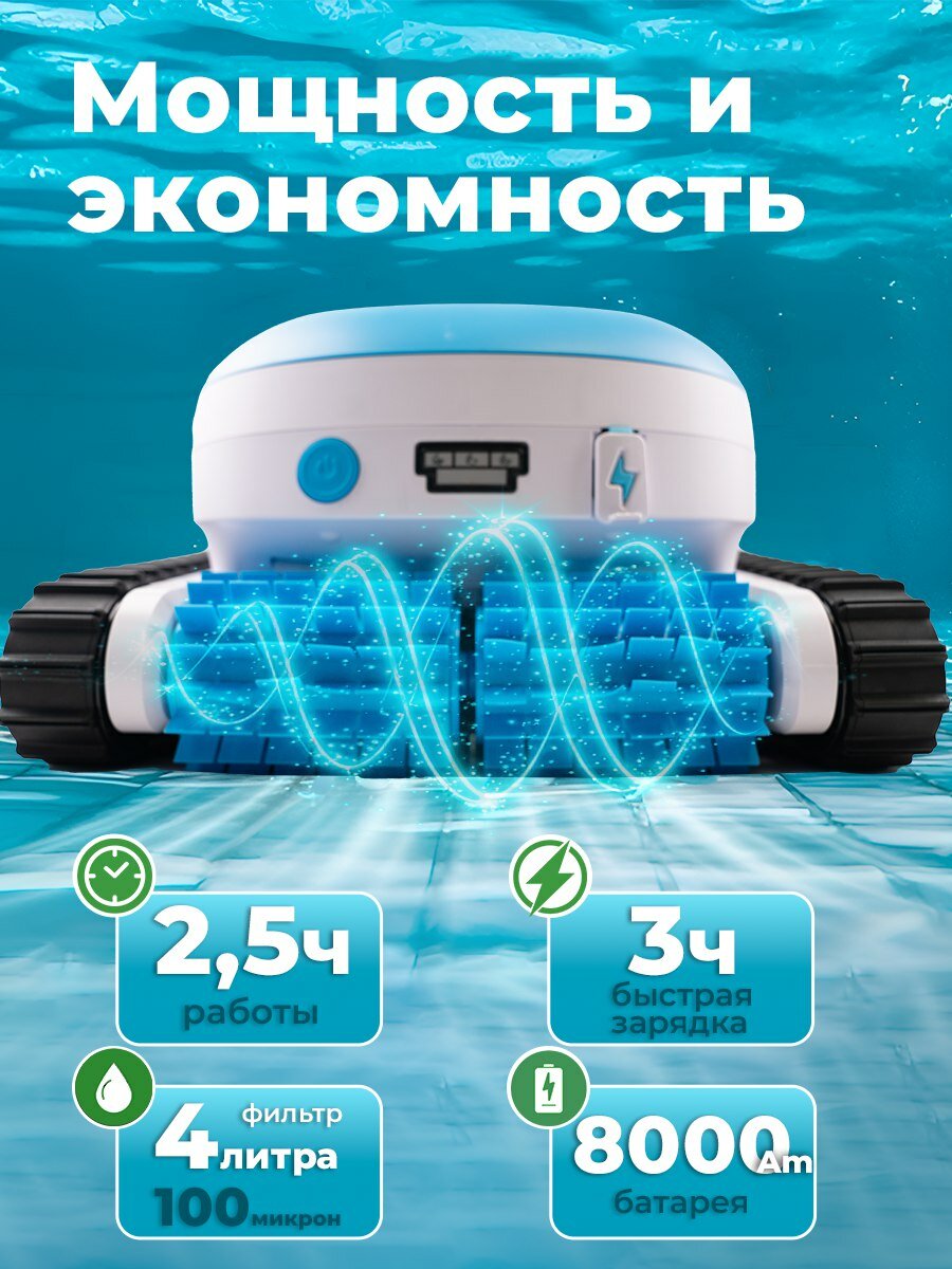 Купить Powerful R9 автоматический робот пылесос для бассейна аккумуляторный с фильтром, голубой с доставкой по всей России.