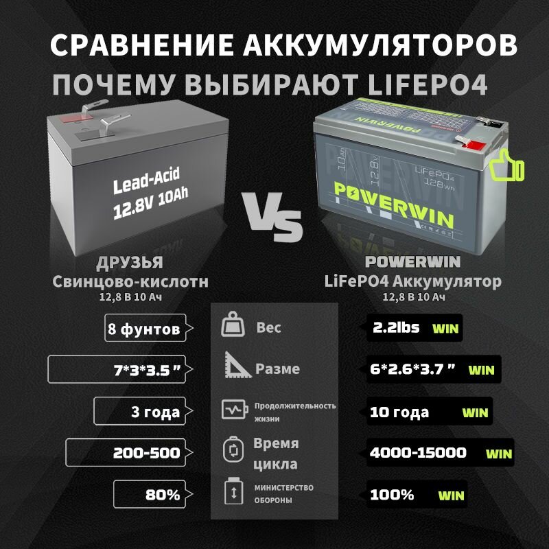 POWERWIN BT10 12,8 В, 10 Ач, LiFePO4 аккумулятор, 4000+ циклов глубокого цикла, встроенный BMS, автономная аккумуляторная игрушка-рыба на солнечной энергии, уличный дом на колесах: сравнение цен, характеристики, фото, актуальное наличие и цены.