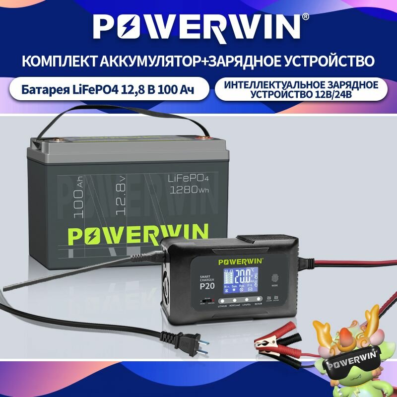 Купить POWERWIN BT100 LiFePo4 Аккумулятор 12 В 100 Ач/1280 Втч Умное зарядное устройство P20 20A, 12V20A, 24V10A с доставкой по всей России. POWERWIN BT100 LiFePo4 Аккумулятор 12 В 100 Ач/1280 Втч Умное зарядное устройство P20 20A, 12V20A, 24V10A: сравнение цен, характеристики, фото, актуальное наличие и цены.