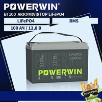 POWERWIN BT100 LiFePo4 Аккумулятор Встроенная BMS Автономная система солнечной энергии Автомобильная зарядка Инвертор для хранения энергии RV 12 В 100 Ач/1280 Втч