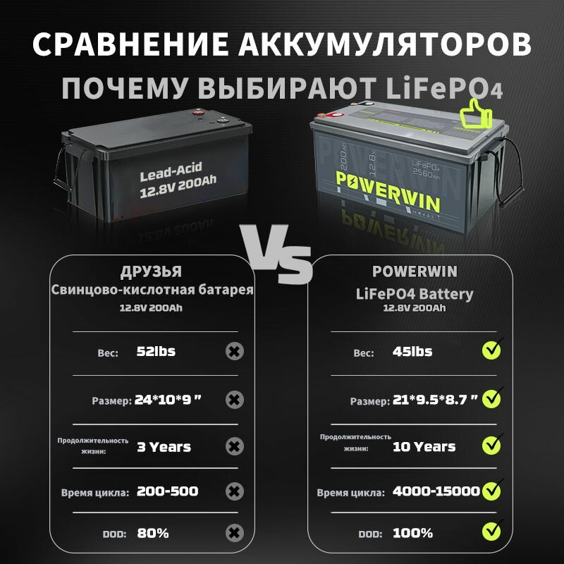 POWERWIN BT200 Аккумулятор LiFePO4 Солнечный генератор Последовательное/параллельное подключение 12V 200 Ач 2560 Втч: сравнение цен, характеристики, фото, актуальное наличие и цены.