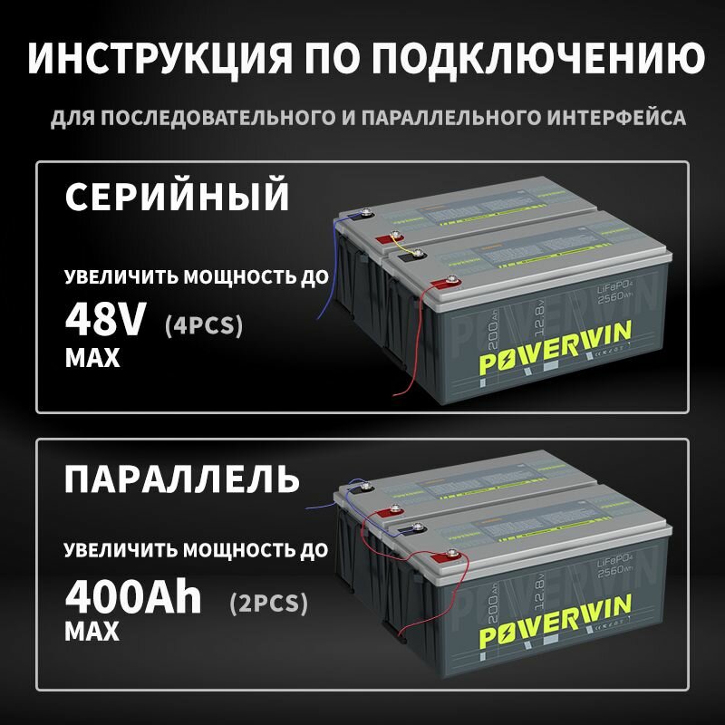 Купить POWERWIN BT200 Аккумулятор LiFePO4 Солнечный генератор Последовательное/параллельное подключение 12V 200 Ач 2560 Втч с доставкой по всей России.