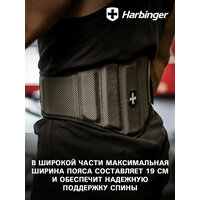 Дизайн пояса Harbinger выполнен таким образов, что в широкой части его максимальная ширина составляет 19 см – это обеспечит надежную поддержку спины во время упражнений с большой нагрузкой. Узкая часть пояса шириной 7,6 см стабилизирует мышцы кора спереди.