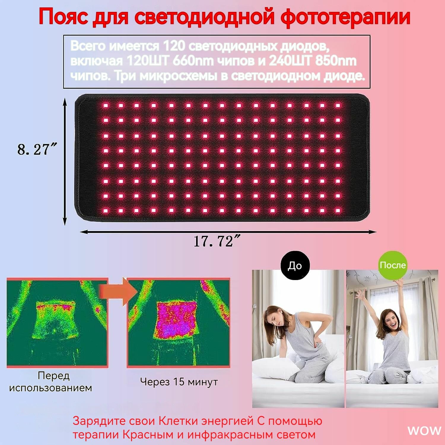 Пояс красного света ближнего инфракрасного диапазона 660 nm и 850 nm, 120шт LED, Частота импульсов 10 Hz и 40 Hz, используется для красоты кожи и нагрева для уменьшения количества жира: сравнение цен, характеристики, фото, актуальное наличие и цены.