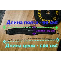 Длина пояса - 90 см, длина цепи - 110 см, ширина спинки - 15 см.