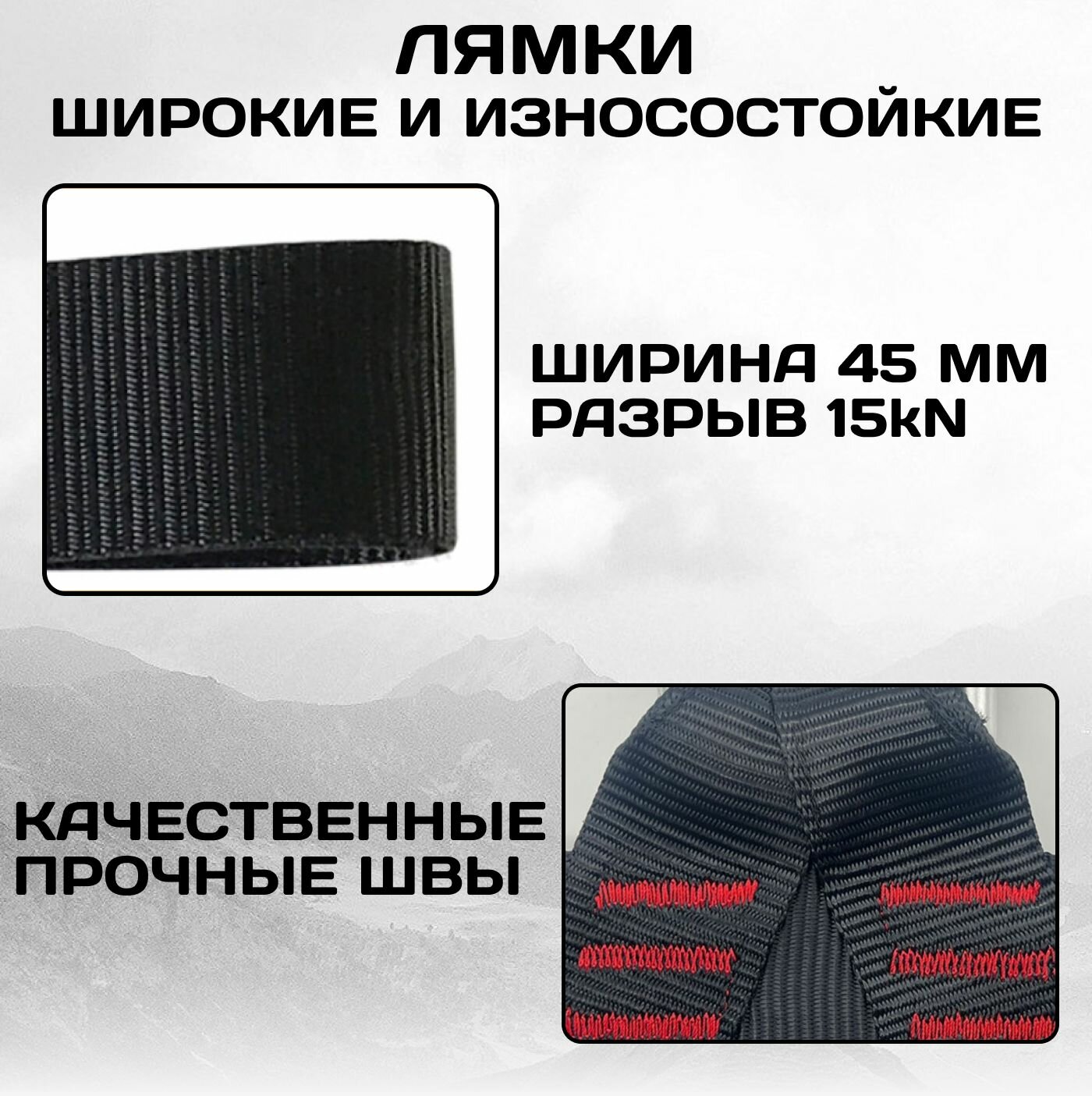 Основным элементом экипировки при восхождении и работе на высоте является страховочная обвязка или, иначе говоря, поясная беседка. Эта модель является туристической, оснащена специальными петлями для крепления вспомогательных элементов. Она идеальна для несложных походов, альпинизма, ски-альпинизма, турмногоборья, скалолазания начального уровня, туризма, парков развлечений. Также страховочная перевязь используется в промышленных условиях, когда необходимо обеспечить удержание и безопасность рабочего на высоте. Универсальная страховочная привязь изготовлена из прочных широких лямок из полиэстера, которые обеспечивают комфортную фиксацию. Точка крепления выполнена из износостойкого материала, расположена выше поясного ремня и имеет дополнительную защиту протектором. Она оснащена четырьмя стальными пряжками на набедренных лямках и поясе, которые позволяют подгонять страховочную систему по фигуре и выдерживают высокие нагрузки. Петли для развески снаряжения позволят равномерно распределить груз. Широкий пояс и накладки на бедрах из качественного полиэфирного волокна обеспечат комфорт при ношении перевязи, не натирают в точках давления. Альпинистское снаряжение легкое и компактное, простое и удобное в использовании, что позволяет ее брать с собой в любое путешествие. Походное снаряжение идеально подходит для альпинистов и скалолазов, а также для профессионалов, работающих на строительных площадках, при ремонте зданий или монтаже конструкций. Страховка проста в использовании и обеспечивает высокий уровень безопасности, что позволяет сосредоточиться на выполнении задач, не беспокоясь о возможных рисках. Поясная беседка «JH 008», полностью регулируемая нижняя обвязка для альпинизма и скалолазания. • Две регулируемые стальные пряжки на поясе для центрирования страховочного кольца. • Две регулируемые пряжки на бедрах для комфортного регулирования под нужный размер • Дополнительные накладки на ножных петлях и поясе. • Петли для развески снаряжения. Обхват пояса - 98-120 см