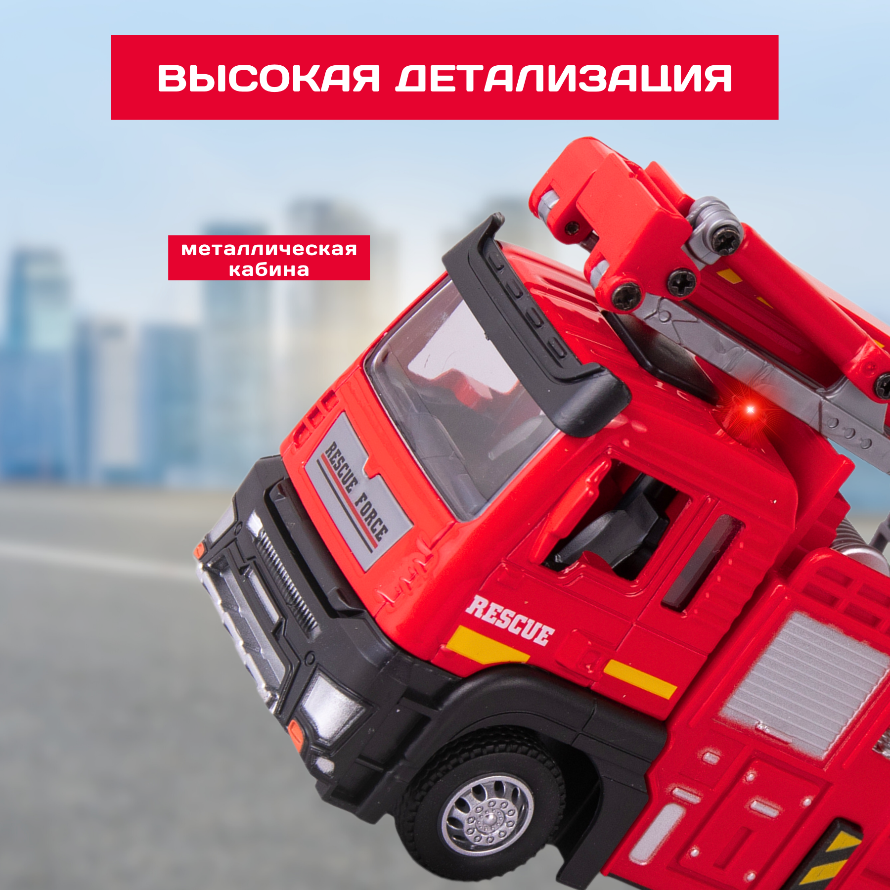 Купить Пожарная машина игрушка, звуковые и световые эффекты, металлическая кабина с доставкой по всей России.