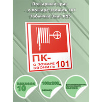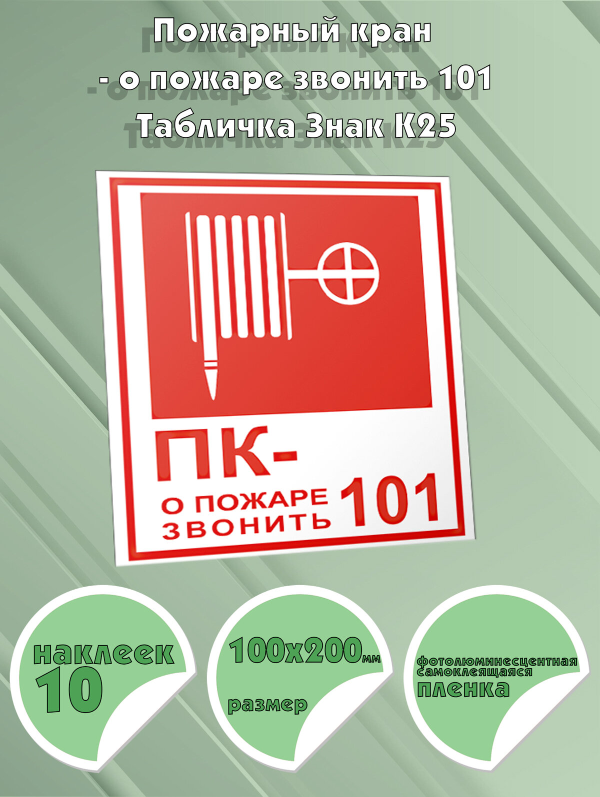 Пожарный кран — о пожаре звонить 101. Табличка Знак К25 (фотолюминесцентная самоклеящаяся плeнка), 10 шт, 100×200: сравнение цен, характеристики, фото, актуальное наличие и цены.