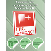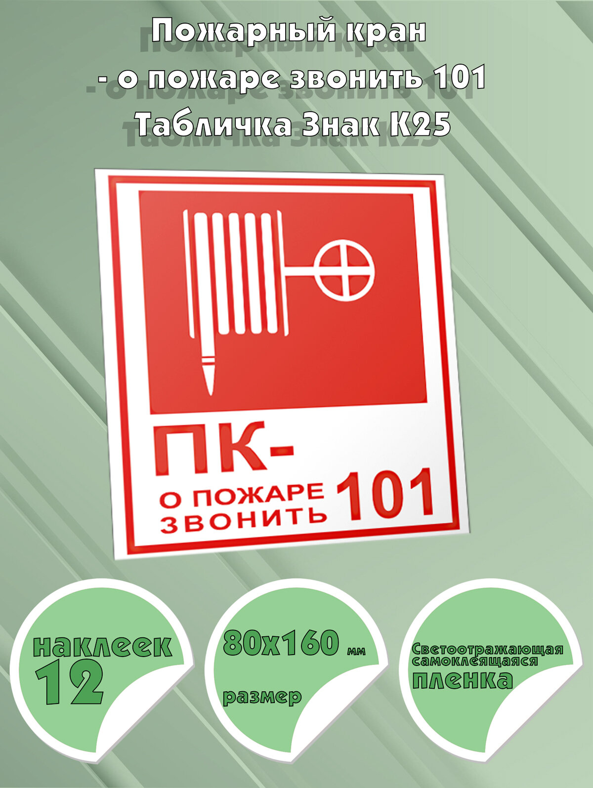 Пожарный кран — о пожаре звонить 101. Табличка Знак К25 (фотолюминесцентная самоклеящаяся плeнка), 12 шт, 80×160 мм: сравнение цен, характеристики, фото, актуальное наличие и цены.