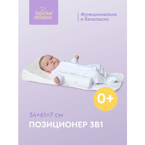 Детский позиционер 3в1 обеспечивает приподнятое положение тела малыша во время сна и после кормления, а специальные ограничители (валики) не дают ребенку пробудиться от собственных движений. Данная позиция рекомендована педиатрами, так как облегчает дыхание и пищеварение. Позиционер рекомендуется, если ребенок часто срыгивает и активно двигается во время сна.