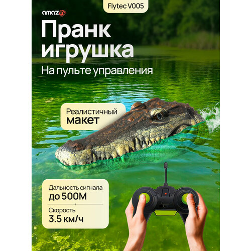 Это пранк игрушка на пульте управления в виде крокодиловой головы для розыгрышей в водоемах, а также отпугивания птиц в искусственных водоемах, например бассейнах или прудах. Корпус выполнен максимально реалистично, поэтому в воде игрушка практически неотличима от настоящего крокодила. Корпус крокобота полностью водонепроницаем и выполнен из прорезиненного материала. Аккумулятор на 500 mAh обеспечивает 30 минут плавания устройству. Гнездо для зарядки надежно скрыто прорезиненной заглушкой. Скорость передвижения крокобота составляет около 3,5 км/ч. Для передвижения вперед и назад используется пульт управления. Пульт управления имеет частоту 2,4 ГГц и защищен от помех, дальность приема сигнала составляет 500 метров. Пульт управления работает от 2х АА батареек (в комплект не входят). Размер головы крокодила: 30.5 х 13.5 х 11.5 см (ДхШхВ).
