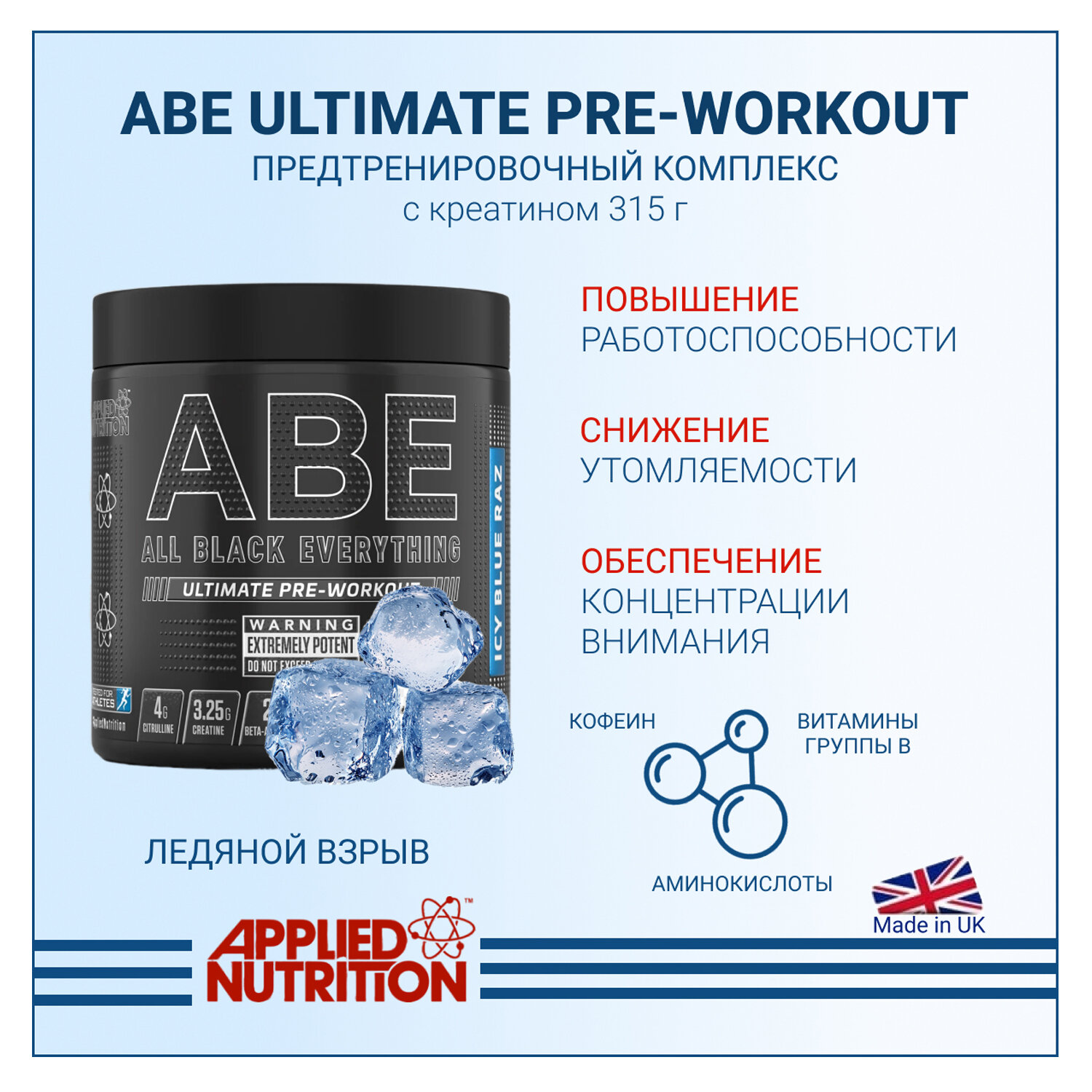 Предтренировочный комплекс Applied Nutrition ABE Ultimate PRE-WORKOUT с креатином Ледяная голубая малина 315 гр: сравнение цен, характеристики, фото, актуальное наличие и цены.