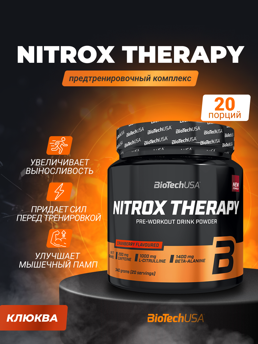 Предтренировочный комплекс / BioTechUSA Nitrox Therapy / 340 гр — клюква: сравнение цен, характеристики, фото, актуальное наличие и цены.