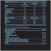 | Основной компонент | BCAA, аргинин, бета-аланин, витамины и минералы, кофеин, креатин, таурин |