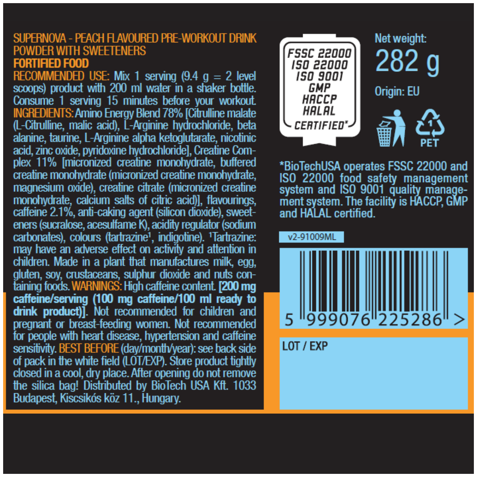 Предтренировочный комплекс / BioTechUSA Super Nova 282 г / персик: сравнение цен, характеристики, фото, актуальное наличие и цены.