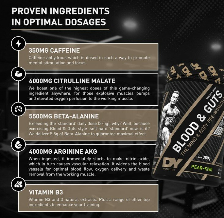 Предтренировочный комплекс «DY Nutrition Blood&Guts» со вкусом манго, 20 порций, 380 грамм: сравнение цен, характеристики, фото, актуальное наличие и цены.