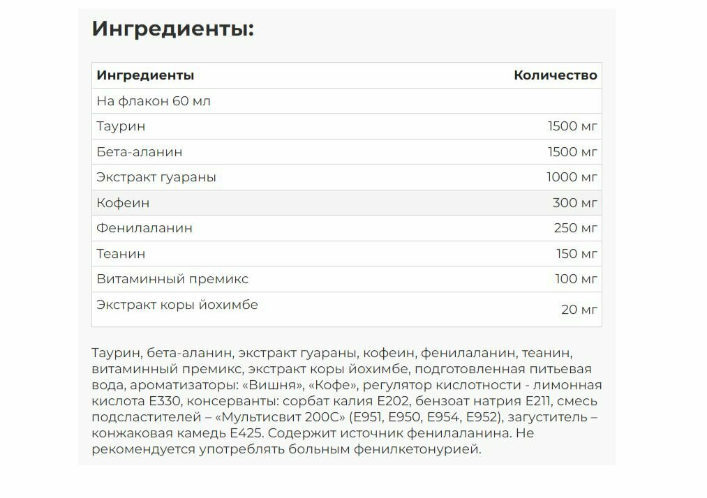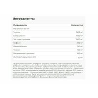 бета-аланин, витамины и минералы, кофеин, креатин, таурин
