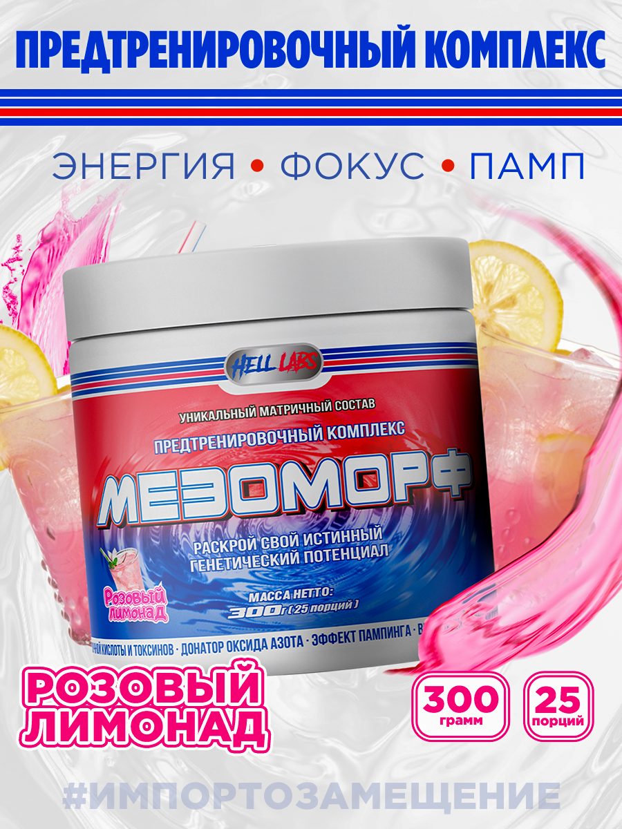 Hell Labs MESOMORPH 300g (Pink Lemonade) – это взрывной предтренировочный комплекс, который включает несколько уникальных матриц, повышающих продуктивность на тренировке.