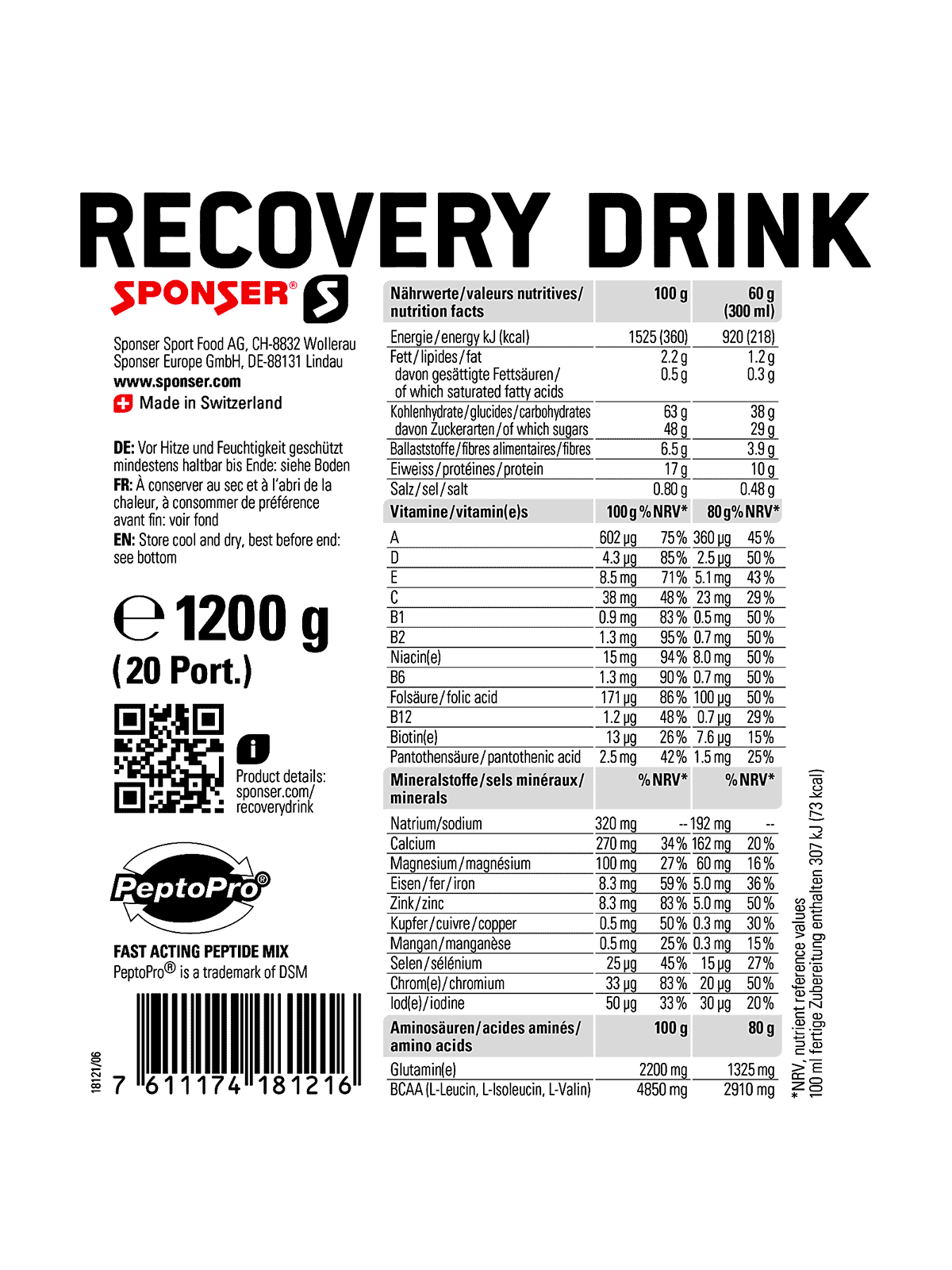 Купить Предтренировочный комплекс Sponser «Recovery Drink», клубника-банан, порошок, 1.2 кг с доставкой по всей России. Предтренировочный комплекс Sponser «Recovery Drink», клубника-банан, порошок, 1.2 кг: сравнение цен, характеристики, фото, актуальное наличие и цены.