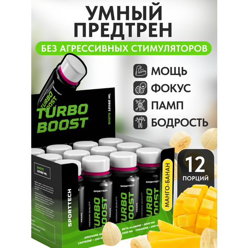 Turbo Boost 12 шотов по 60 мл. Предтренировочный комплекс Sport Technology Nutrition Turbo Boost позволит вам добиться невероятной эффективности ваших тренировок. Многокомпонентный комплекс для увеличения энергии перед тренировкой. Заряжает энергией, повышает выносливость, устраняет физическую усталость, повышает иммунитет. Способствует сбросу лишнего веса, ускоряет регенерацию мышечных клеток. Принцип работы :- Мощный выброс энергии- Концентрация и ясность ума- Повышение работоспособности- Улучшение настроения и эйфория- Эффект держится 3 часа Силовые показатели, выносливость и концентрация поднимутся до непривычных высот. Бета-аланин отсрочивает мышечное закисление за счёт выработки карнозина, буфера молочной кислоты. Таурин, выступающий в качестве нейромедиаторной аминокислоты, обеспечивает питание клеток энергией и катализирует действие стимуляционных компонентов комплекса. Цитруллин - донатор оксида азота. Улучшает кровоток в мышцах, снижает утомление и увеличивает эффект "пампа". Кофеин повышает энергетический уровень, усиливает концентрацию и сосредоточенность. Reckful рекомендуется применять за 20-40 минут до тренировки.