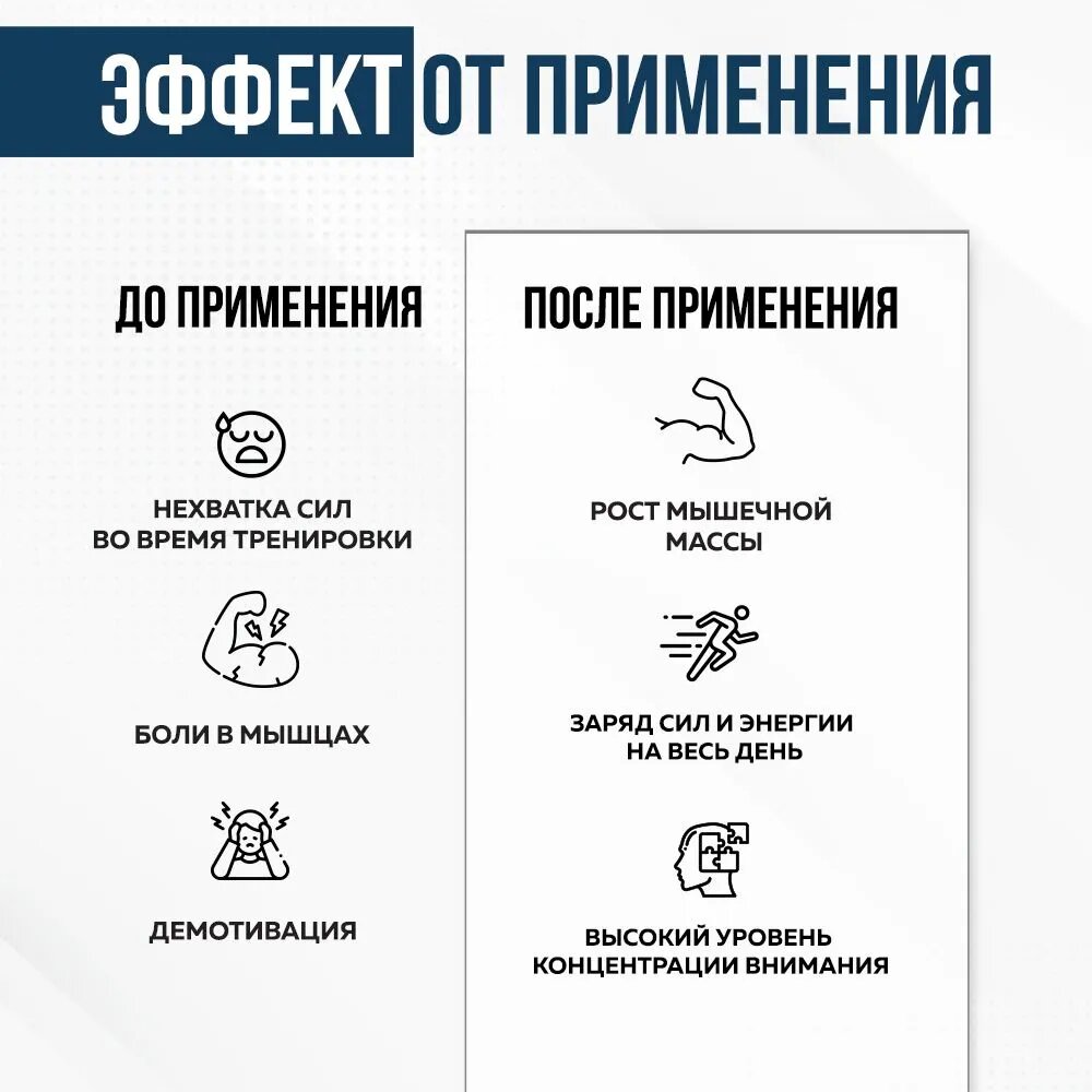 Многофункциональность: продукт подходит как для мужчин, так и для женщин, стремящихся улучшить свои спортивные результаты. Это отличная спортивная добавка для набора мышечной массы и повышения выносливости.