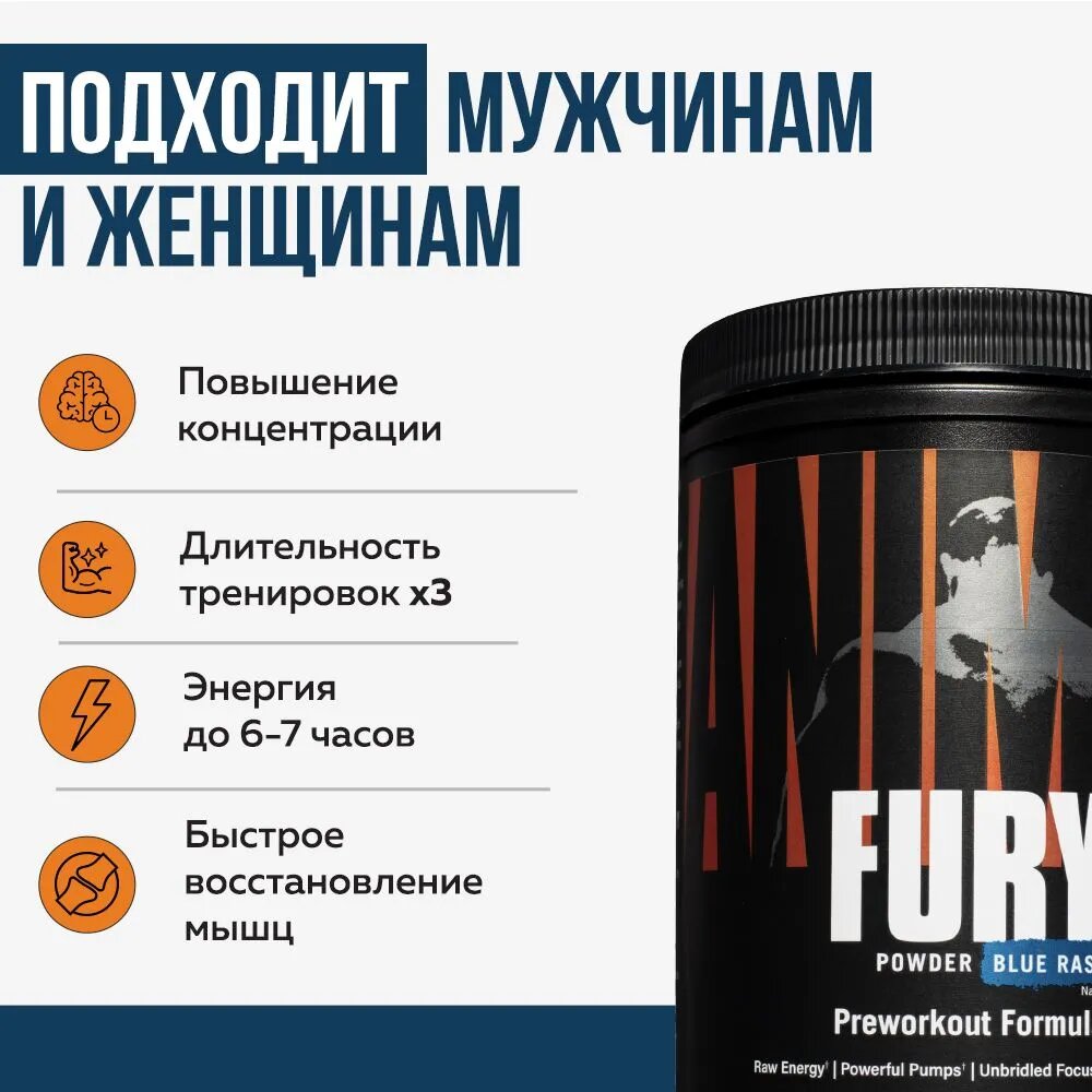 Animal Fury — мощный предтренировочный комплекс, созданный для тех, кто хочет достичь новых высот в спорте. Этот продукт сочетает в себе передовые ингредиенты и научный подход, чтобы обеспечить энергию, выносливость и эффективное восстановление.