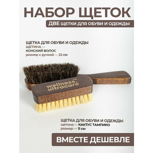 Наша премиальная мягкая щетка для обуви Wellness Ultracare с натуральной щетиной из конского волоса 23 см и жесткая щетка для обуви из волокна Тампико (кактус) 11 см в наборе для дома, теперь у вас есть идеальный инструмент для ухода за обувью, одеждой и другими предметами гардероба. Ваш 14 февраля будет ярким с этим аксессуаром. Щетка для чистки обуви компактна и универсальна, её можно использовать не только дома, но и брать с собой, благодаря удобному размеру — она легко поместится даже в небольшой сумке. Качественный и стильный подарок на 23 февраля для вас и ваших близких. Мягкая щетка для обуви эффективно удаляет пыль и грязь, не повреждая поверхность обуви. Подготовьтесь заранее, чтобы день Защитника Отечества прошел идеально. Натуральная щетина обеспечивает бережный уход за любым типом обуви, включая лакированную, кожаную, замшевую и нубуковую. Этот подарок станет удачным приобретением, которое точно пригодится на 8 марта. Щетки для обуви отлично подходят для деликатных материалов, поддерживая обувь в идеальном состоянии. Щетка для обуви из натуральной щетины универсальная, с деревянной колодкой — незаменимый помощник в уходе за обувью и одеждой. Идеальна для чистки кожаной, замшевой, лакированной и нубуковой обуви, а также для нанесения средство по уходу: воска, крема и чистящих составов. Щетка для мытья обуви из мягкой щетины эффективно справляется с удалением пыли, грязи и придаёт блеск. Аксессуары для обуви также можно использовать для чистки мебели, ковров и даже для ухода за салоном автомобиля и от пыли для машины, вместе с пеной для обуви. Прекрасно подойдет для белой обуви и белых кросовок. Щетка обувная мягкая Wellness Ultracare — это проверенный временем очиститель обуви, который сделает ваши ботинки, туфли и вещи не только чистыми, но и продлит их срок службы. Наша щетка для обуви мытья, как идеальный подарок для ухода за обувью, друзьям и на выпускной и день рождения, наслаждайтесь безупречным внешним видом ваших вещей!