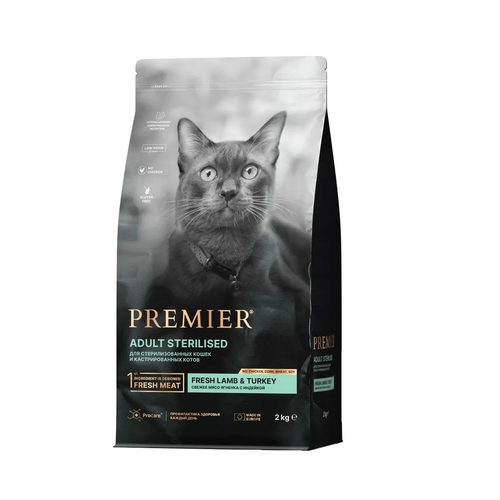 PREMIER Cat Lamb&Turkey STERILISED - полнорационный сухой корм супер премиум класса для взрослых стерилизованных кошек и кастрированных котов от 1 года со свежим мясом ягненка с индейкой.