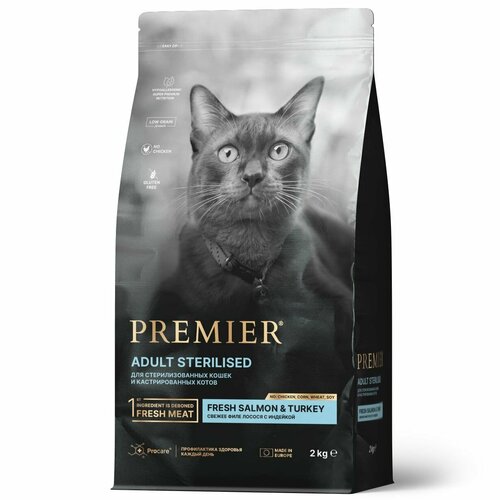 Купить Premier Cat Salmon&Turkey STERILISED (Свежее филе лосося с индейкой для кошек) 2 кг с доставкой по всей России. Premier Cat Salmon&Turkey STERILISED (Свежее филе лосося с индейкой для кошек) 2 кг: сравнение цен, характеристики, фото, актуальное наличие и цены.