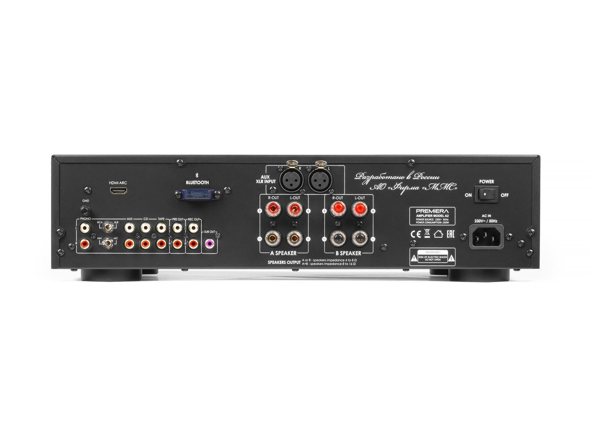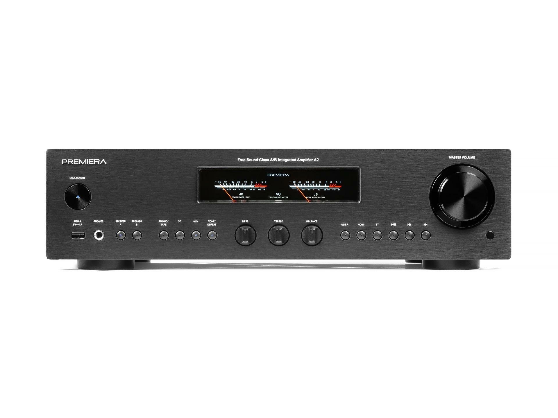 Premiera A2 - современный интегральный Hi-Fi стереоусилитель класса AB со встроенными MM/MC фонокорректором, Bluetooth и HDMI ARC, с номинальной выходной мощностью 55 Вт на канал.