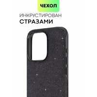 Купить Премиум блестящий чехол BROSCOP на Apple iPhone 15 Pro (Айфон 15 Про), с кристаллами, черный с доставкой по всей России.
