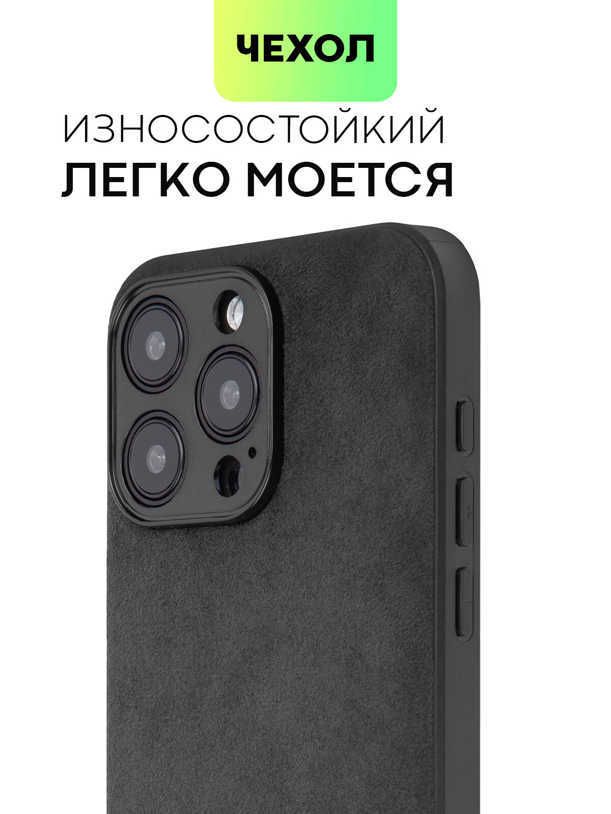 Премиум чехол Алькантара BROSCORP на Apple iPhone 15 Pro Max (Айфон 15 Про Макс), замшевый, черный: сравнение цен, характеристики, фото, актуальное наличие и цены.