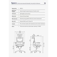 | Регулировка | высоты подголовника, высоты подлокотников, высоты поясничного упора, высоты сиденья, высоты спинки, глубины положения подлокотников, глубины сиденья, жесткости качания, наклона спинки, расстояния между правым и левым подлокотником, угла наклона подголовника, угла подлокотников |