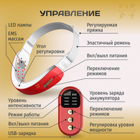 Косметический тепловой аппарат включает в себя EMS, микротоки, лифтинг, массаж для тела, LED (хромотерапию), инфракрасную терапию с теплым прогревом (горячий компресс) против старения.