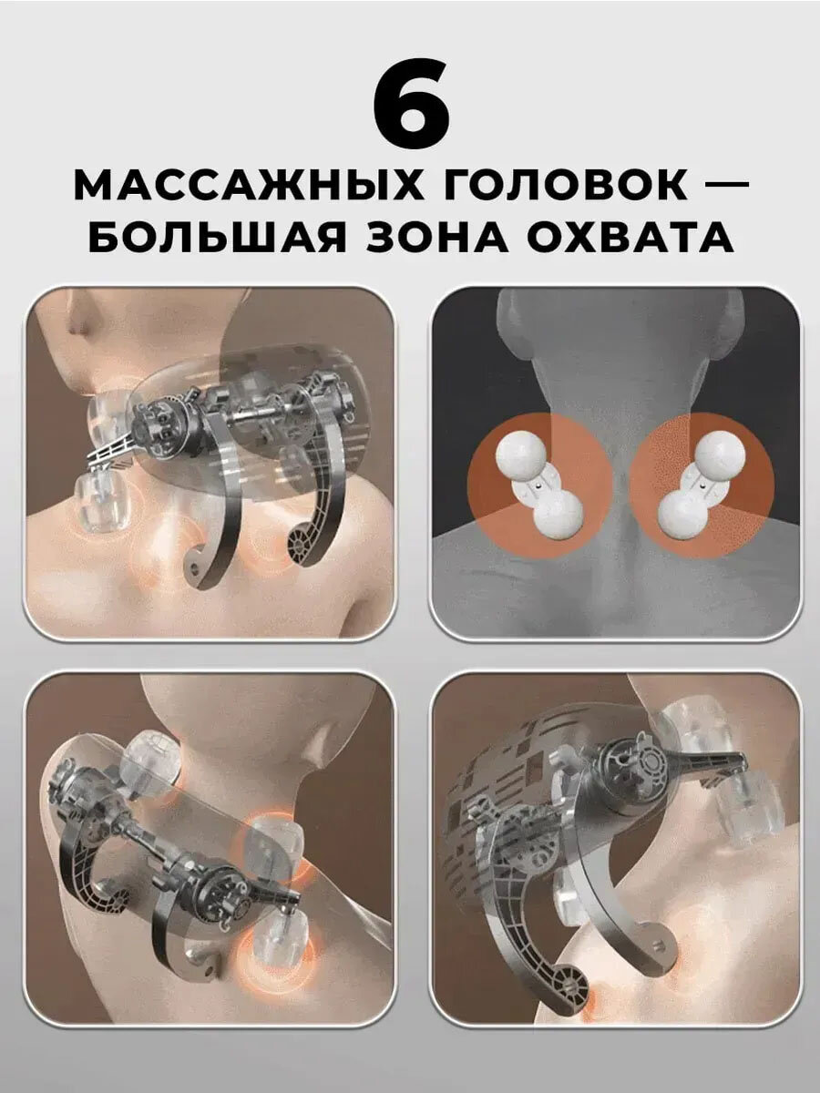 Уникальный верхний массажный блок с 8 массажными узлами эффективно воздействует на мышцы плеч, шеи и шейно-воротниковой зоны, тщательно разминая каждую точку: максимально быстро снимает зажимы и мышечное напряжение в плечевой области, улучшает общее кровоснабжение. Также его можно использовать для проработки мышц спины, поясницы и ног.