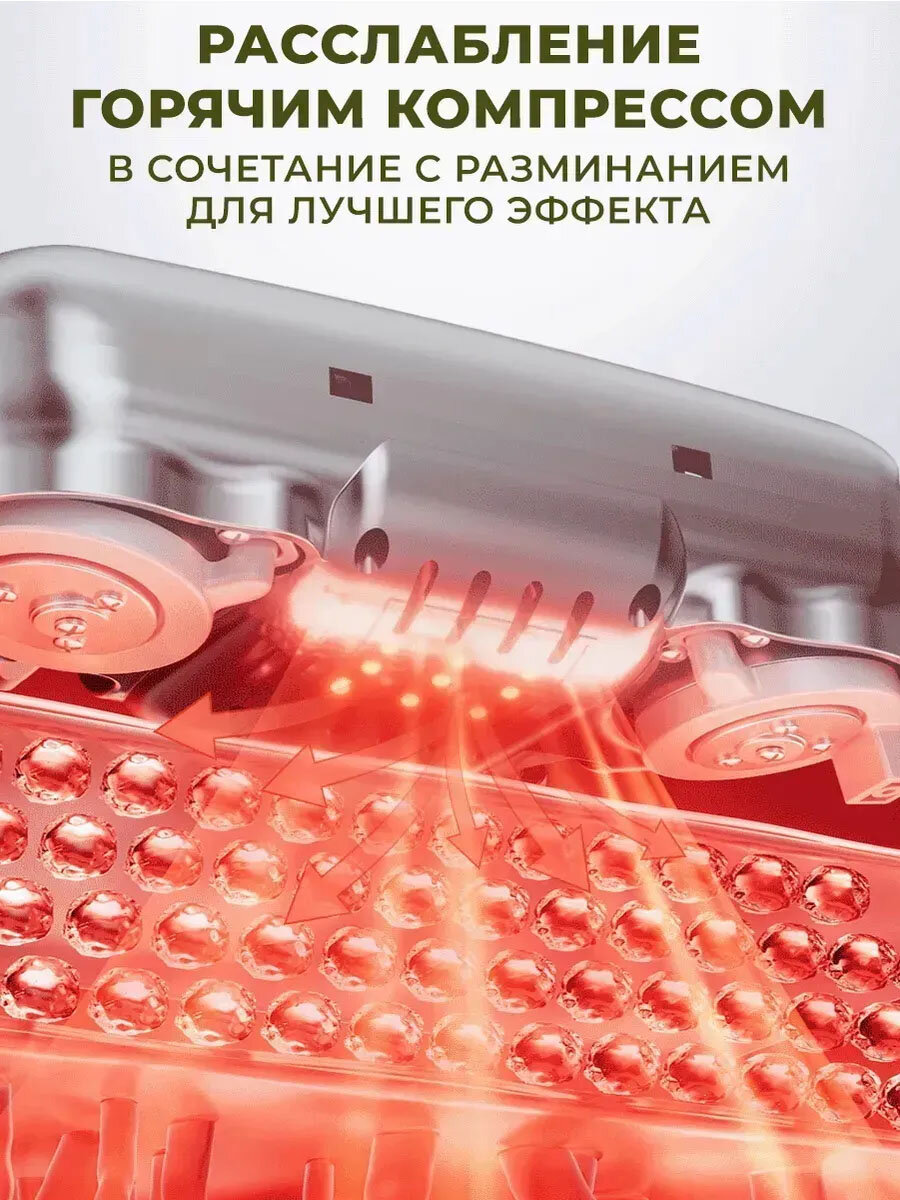 Благодаря обновленным массажным роликам и инфракрасному прогреву массажер мгновенно снимает болевой синдром в теле и зажатость мышц, способствует разрушению мышечных узлов, воздействует на триггерные точки, восстанавливает силы и дарит необыкновенное антистресс-расслабление.