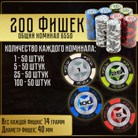 - 200 фишек с номиналом 1, 5, 25, 100