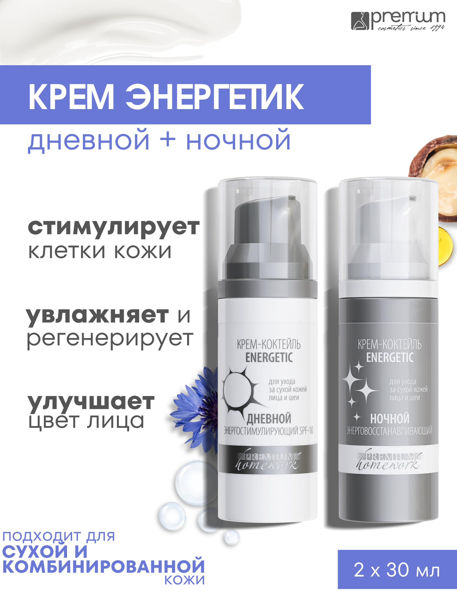 Дневной энергостимулирующий SPF-10 и ночной энерговосстанавливающий крема. Комплекс для ежедневного ухода за сухой кожей с признаками «усталости». Мощные растительные экстракты заряжают ткани энергией, стимулируют потенциал клеток кожи, заставляя её «светиться изнутри». Стимулирует обменные процессы в коже и обеспечивает эффективное увлажнение. Защищает от УФ-лучей и улучшает местный иммунитет. Способствует выравниванию цвета лица. Активизирует работу клеток кожи и устраняет дефицит микроэлементов, аминокислот, фосфолипидов. Оказывает регенерирующий эффект и предотвращает потери влаги кожей. Способ применения: небольшое количество крема наносится на кожу лица и шеи перед нанесением макияжа. Перед сном наносите крем маской на очищенную кожу лица и шеи.