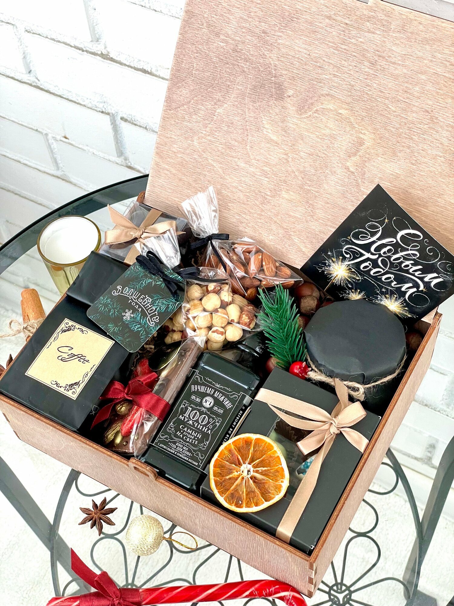Что важно для мужчины? То, что он нужен, ценен и важен для кого-то. Внимание и забота от самых Любимых. Этот сладкий подарок в оригинальном деревянном боксе будет идеальным подарком на Новый Год, 23 февраля, День рождения или любой другой праздник в качестве знака внимания для Вашего лучшего Мужчины на свете, Мужа, Папы, Брата, Босса или лучшего Друга. Ароматный кофе с шоколадом и орешками в течение дня с мыслями о Вас - это бесценно! Внутри набора: ▪Ароматный молотый кофе ▪Шоколад из Бельгийского шоколада ручной работы с добавлением цельных орехов, сублимированной клубники и сушёной клюквы. Сверху украшено золотым пищевым кандурином. ▪Шоколадные конфеты 6-ти вкусов ручной работы из молочного, тёмного, белого, рубинового, лимонного и апельсинового Бельгийского шоколада с орешками и клюквой. ▪гель для душа ▪миндаль в темном шоколаде ▪орехи в меде ▪жареные орехи(миндаль и фундук) ▪Открытка с Вашими пожеланиями. А также частичка тепла в каждом наборе! Мы делали с любовью ❤ Вашему мужчине будет очень вкусно!