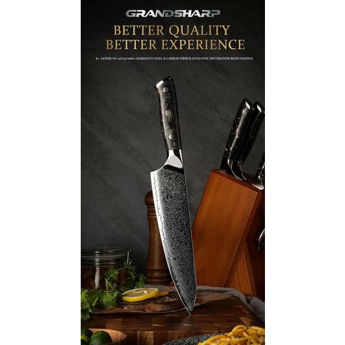Купить Премиум шеф нож нож из дамасской стали GRANDSHARP с доставкой по всей России. Премиум шеф нож нож из дамасской стали GRANDSHARP: сравнение цен, характеристики, фото, актуальное наличие и цены.
