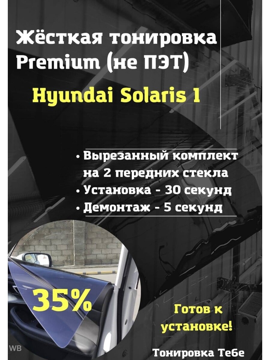 Жесткая тонировка Premium. Устанавливается без воды на абсолютно сухое стекло. Установка занимает 30 секунд. Демонтаж - 5 секунд. За основу жесткой тонировки Premium взят качественный термостойкий материал (рабочий диапазон температур от -70 до +100), к которой приклеена тонировочная пленка премиум сегмента SunTek (производство США). Данный вид пленки полюбился многим покупателям за: 1. Прекрасную видимость внутри (без синевы и мутности), даже в ночное время суток. 2. Качественный антицарапийный слой, который увеличивает количество повторных установок (более 1000 раз). 3. Грандиозный процент удержания тепла. 4. Срок службы (до начала выгорания) - 3 года. 5. Поднимается и опускается вместе со стеклом. 6. Внутри выглядит как обычная тонировка, снаружи под определеным углом получается графитовый оттенок. В наличии более 1400 лекал. Если вы не нашли тонировку на свое авто, свяжитесь с нами. На заметку: в случае какой-либо проверки, демонтаж тонировки занимает 5 секунд, нет предмета нарушения - нет штрафа. Лояльная тонировка - лояльный контроль. ТОнировка сетки, автотонировка, тонировка американка, съемная тонировка, многоразовая тонировка, тонировка без штрафов, тонировка по госту, тонировка генерал, тонировка мостео, тонировка general. tonirovka\_tut, hyundai solaris 1, солярис 1 , хундай салярис 1