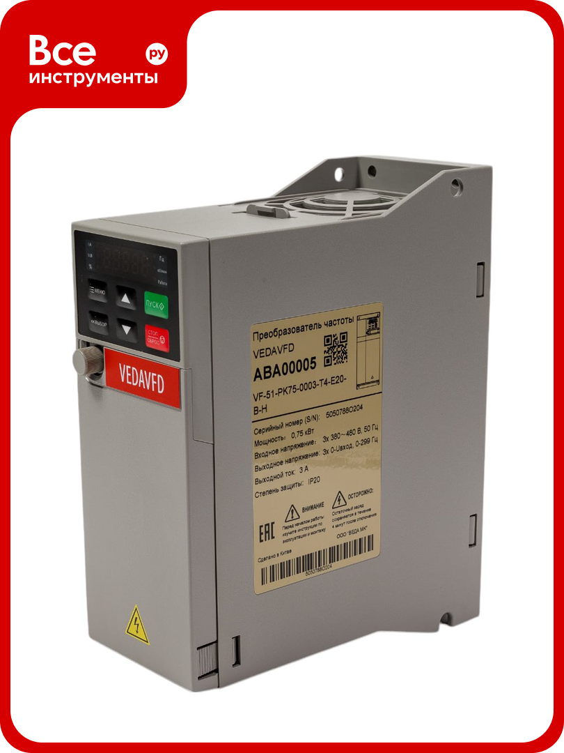 Преобразователь частоты VEDA VFD vf-51-pk75-0003-t4-e20-b-h, 0,75квт, 380в, ip20 ABA00005: сравнение цен, характеристики, фото, актуальное наличие и цены.