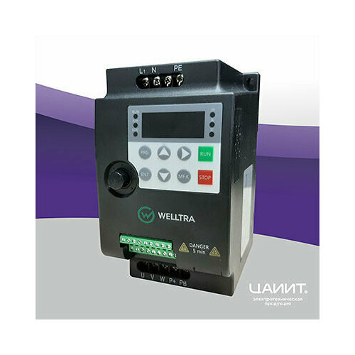 Частотный преобразователь WL50-1R5G – малогабаритный скалярный преобразователь частоты марки WELLTRA, без обратной связи, общепромышленного назначения для широкого спектра применений. Имеет возможность скалярного управления по характеристике U/f без датчика скорости и предназначен для регулирования частоты вращения асинхронных электродвигателей. Перегрузочная способность преобразователя составляет 150% от номинального тока в течение 60 секунд и 180% от номинального тока в течение 3 секунд. Внешняя панель управления – опция (поставляется отдельно).